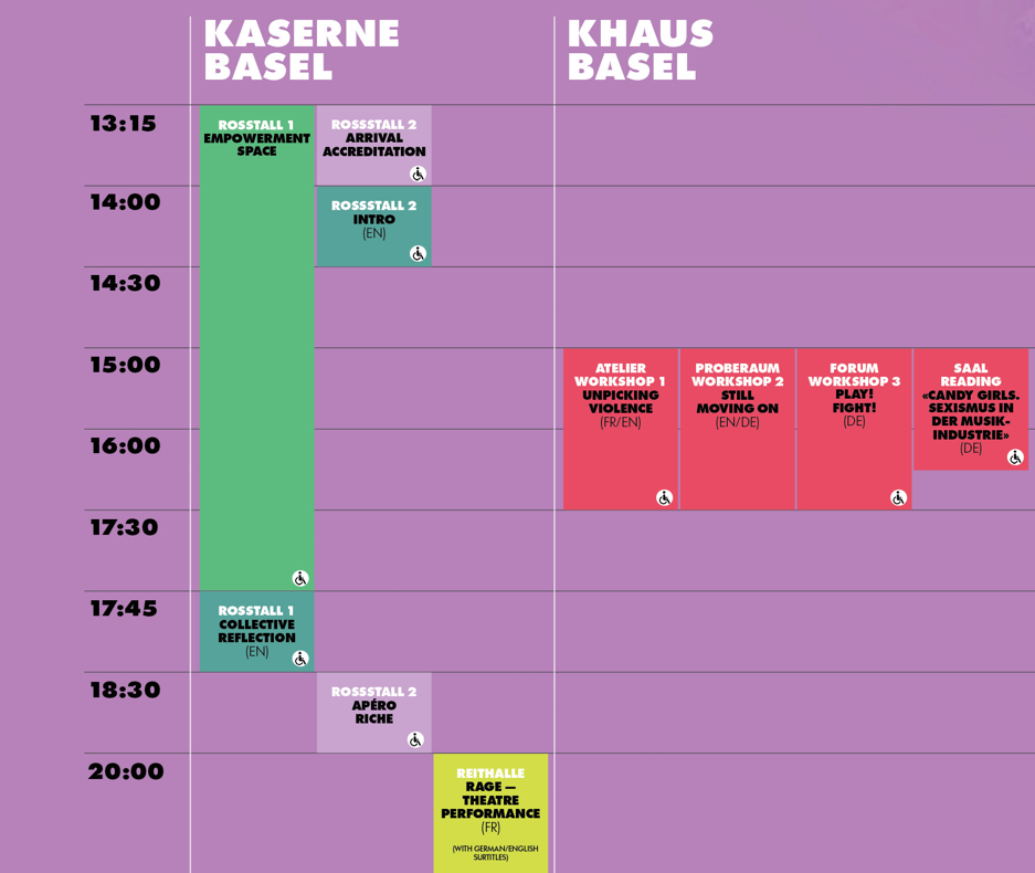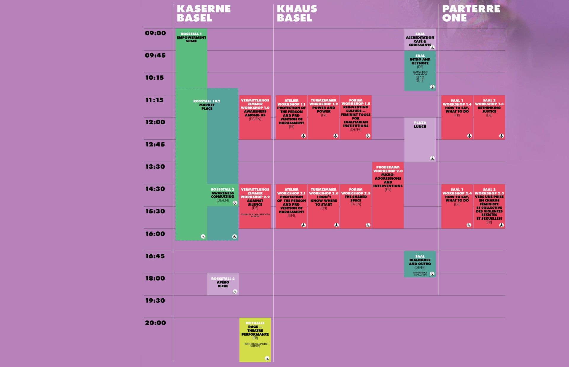 Das eineinhalbtägige Netzwerktreffen bringt Akteur*innen aus den Darstellenden Künsten und der aktuellen Musik zusammen. Es schafft Raum für Austausch, Solidarität und Verbundenheit. Präventions-, Interventions- und Handlungsmöglichkeiten werden vermittelt, Unterstützungsangebote vorgestellt und Good Practices geteilt. Mit Workshops, einer Keynote, Diskussionen, dem Empowerment Space, einem Marktplatz und Theateraufführungen wird Wissen über sexualisierte Gewalt für alle zugänglich gemacht.